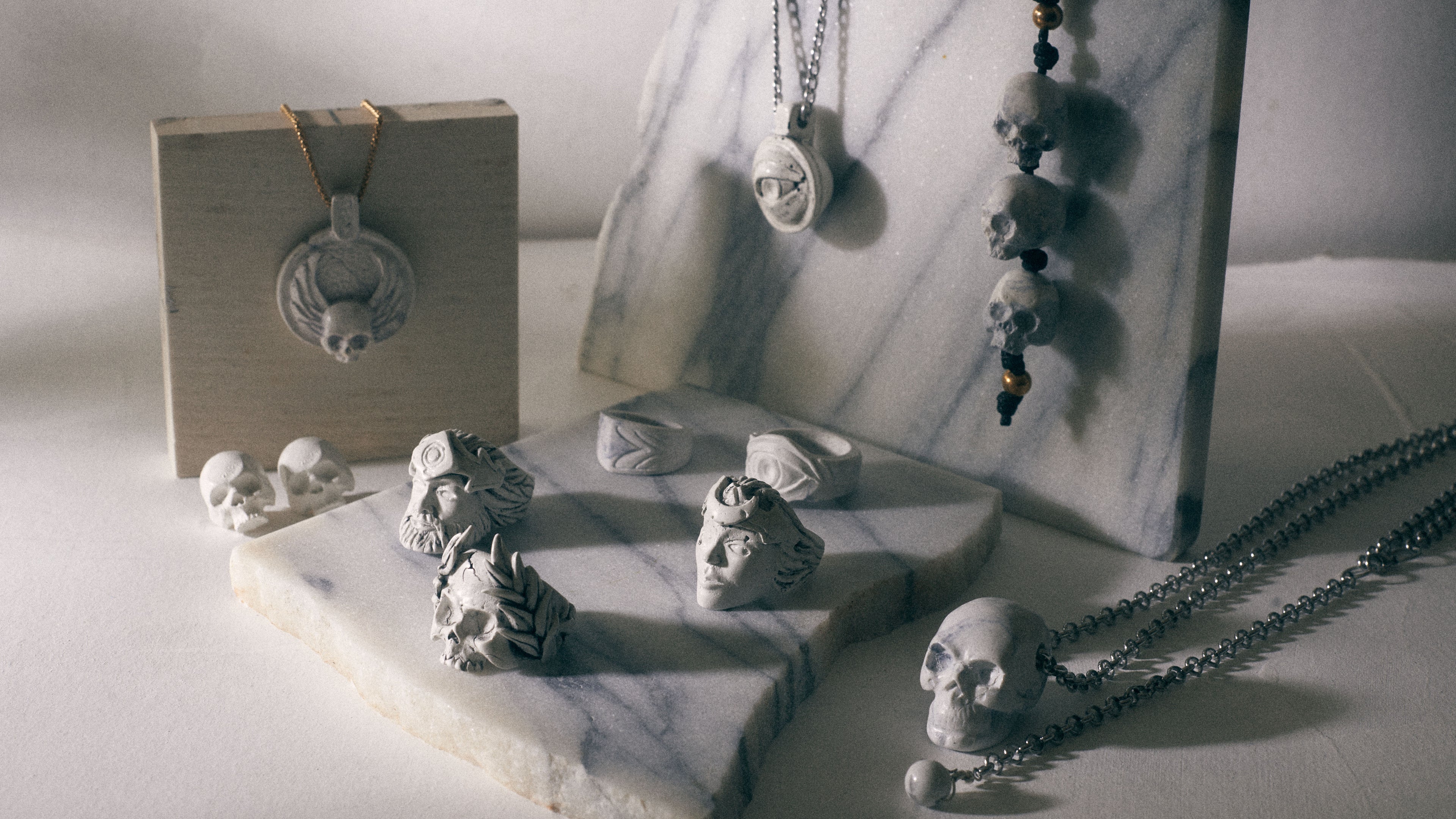 Handcrafted skull rings, necklaces & pins inspired by alchemy and mythology